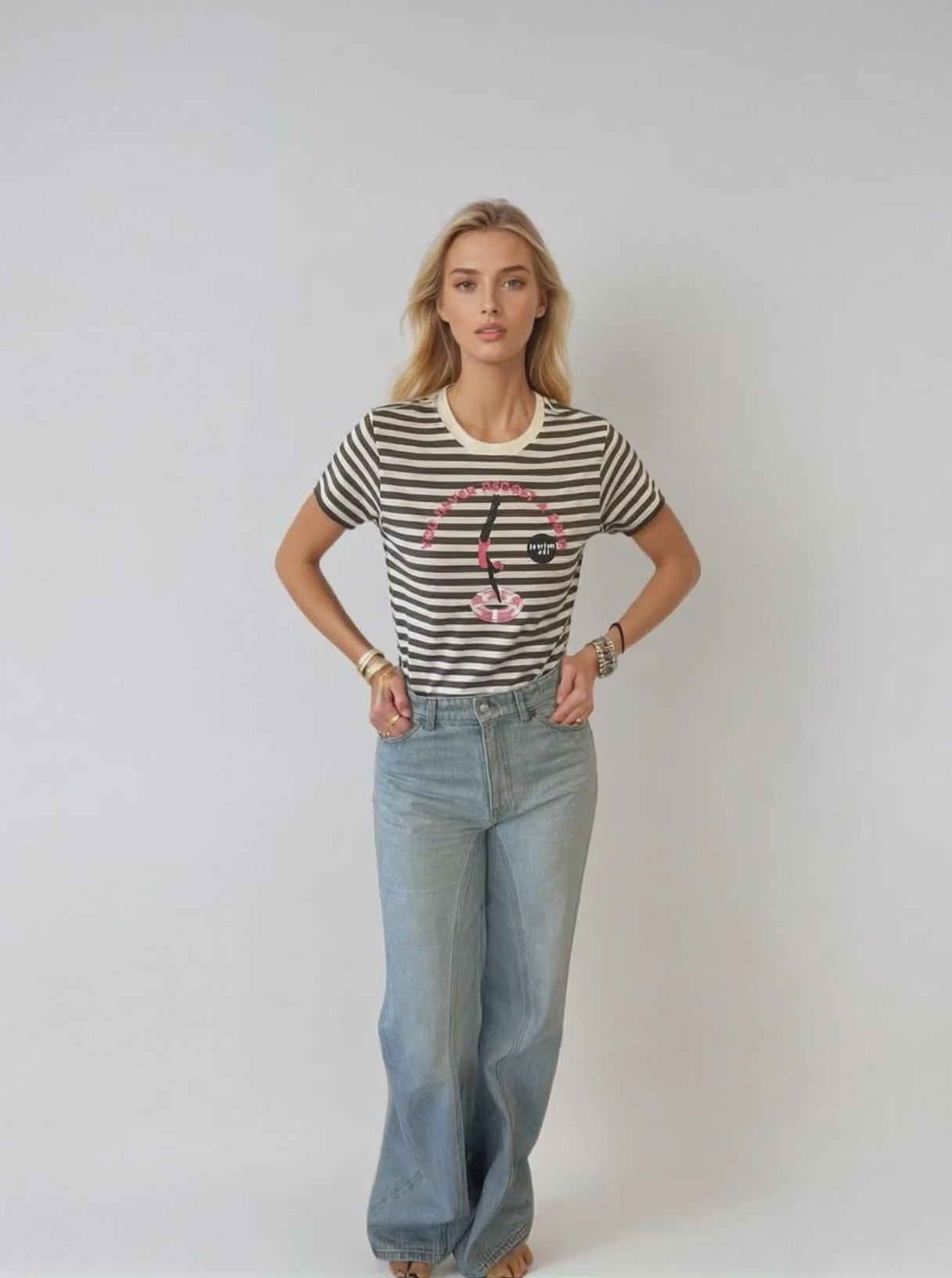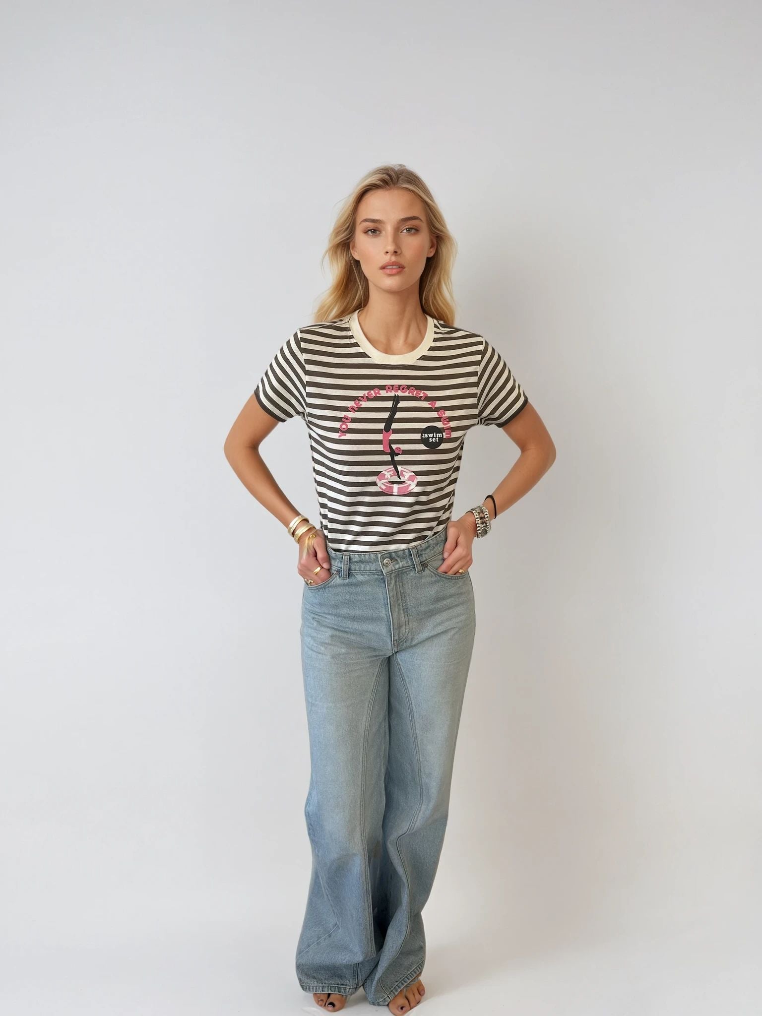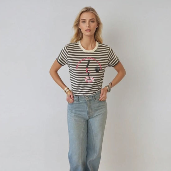 This striped t-shirt is classic silhouette.
