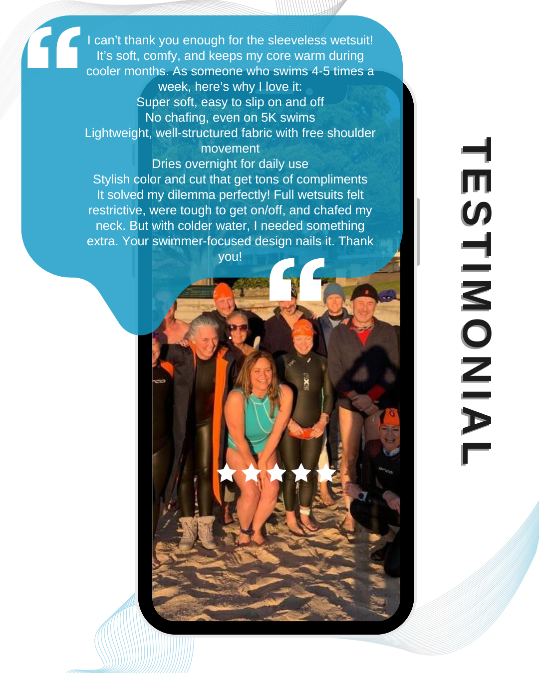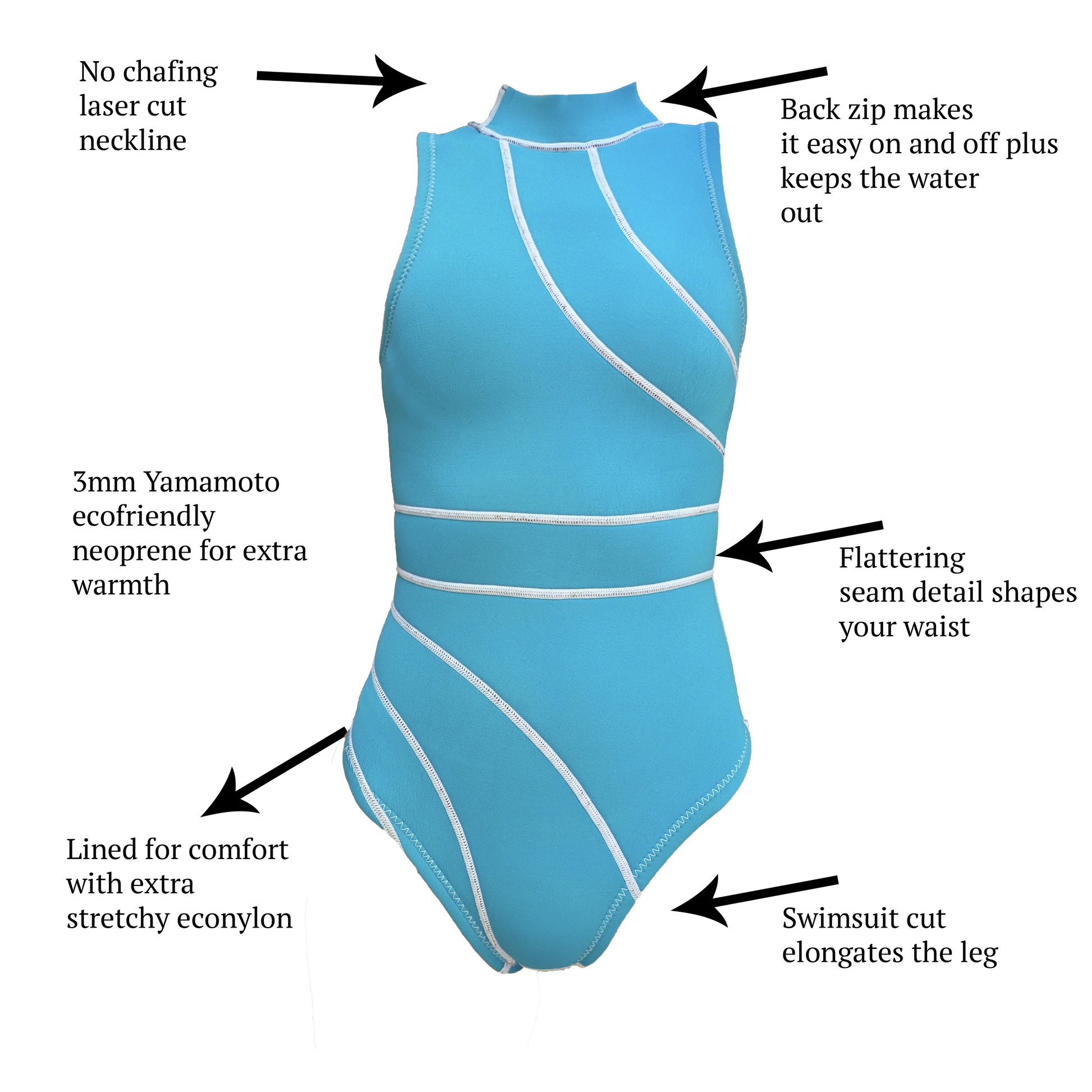 Designed in Australia. For women by women. A super stylish sleeveless wetsuit. For women who want to look good, wearing their wetsuit daily.
